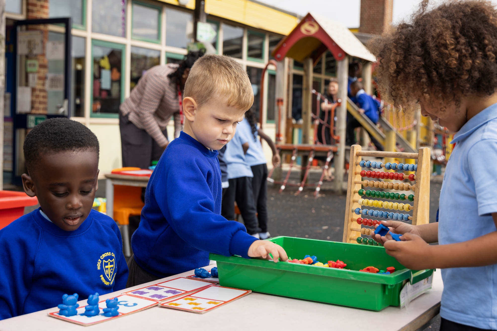 Our vibrant and engaging Nursery at Holy Cross offers children a warm, inspiring, and nurturing start to their school journey. Led by our EYFS Lead, Mrs Hodson, our Nursery provides a rich and exciting curriculum designed to spark curiosity, build confidence, and prepare children beautifully for Reception—whether they continue their journey with us at Holy Cross or move on to another setting of your choice. Children enjoy access to a fantastic outdoor provision, weekly sessions with a qualified sports coach, Forest School activities, and the opportunity to explore and learn within our wider school environment. To find out more, or to register and enrol your child, please contact our school office on 01708 530000.
